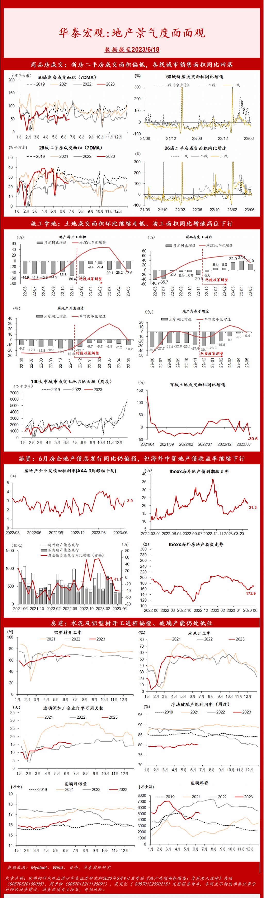 政策端:二季度以来经济修复动力稳中偏弱,楼市也再度出现转弱势头。在此背景下,6月20日,央行下调5年期LPR报价,是继2022年8月以来LPR的首次调整。我们认为,在当前市场环境下,下调LPR报价具有较强的信号意义,有利于提高购房意愿、提振市场信心,对下一步楼市回暖形成利好。