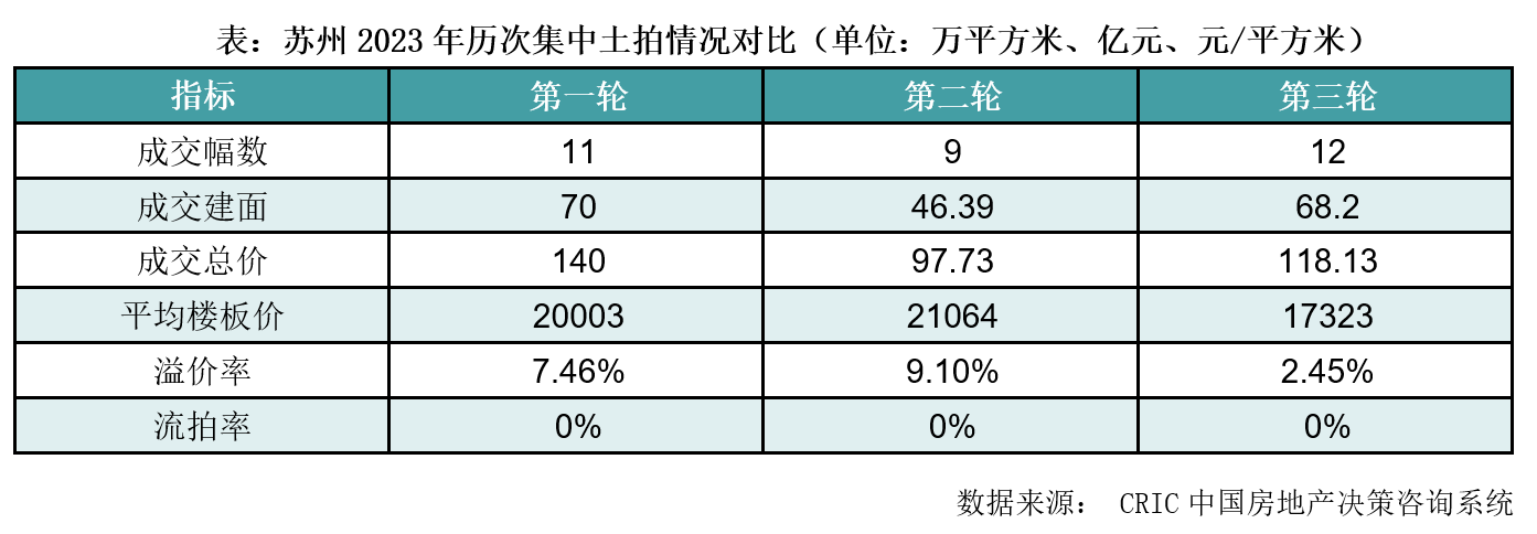 6月25日,端午假期后首日苏州迎来今年第三批次集中供地,成功出让12宗地块,总成交金额118亿元,总建面68.2万平方米。由于地块条件与前两轮相比有所下降,土拍的热度也大幅降低,整体溢价率降至2.45%,国央企和城投再度成为拿地主力,民企的投资意愿有所回落。
