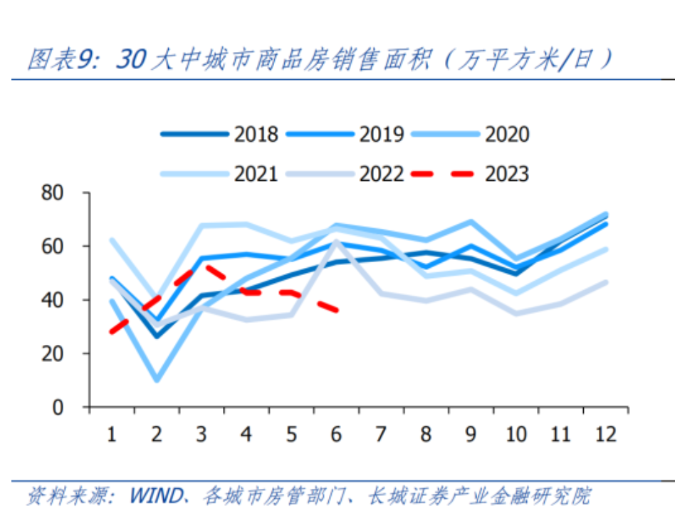 我们判断,在二季度楼市转弱的情况下,下半年政策会持续宽松,为楼市回暖积蓄力量。高频数据显示,6月1日-24日30大中城市单日平均商品房成交套数为3131套,去年同期为4968套,二季度销量转弱的局势已基本确定。伴随5年期LPR报价的下调,预期下半年对楼市的扶持政策会有所加强。整体来看,本轮楼市回暖进程有所拉长,但下半年重回趋势性回暖进程仍值得期待。