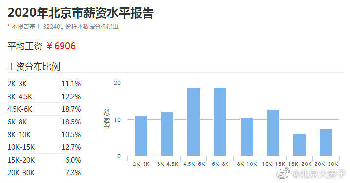 早上专门看了北京收入分布图,找到了2020年的,月收入超过1万的只有26%,超过2万的不到10%,这两年估计大部分人的收入也没怎么增加