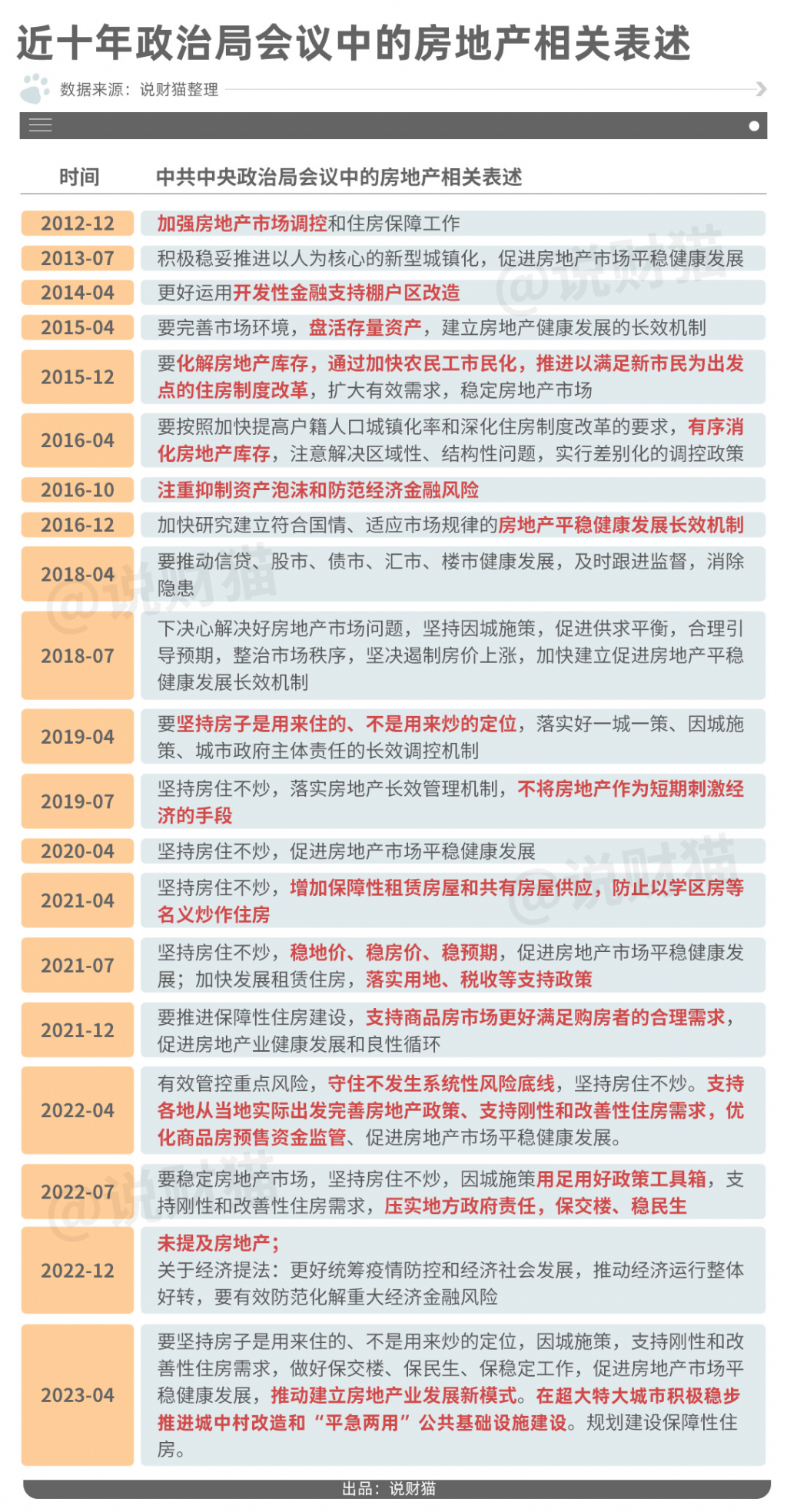 要坚持房子是用来住的、不是用来炒的定位,因城施策,支持刚性和改善性住房需求,做好保交楼、保民生、保稳定工作,促进房地产市场平稳健康发展,推动建立房地产业发展新模式。