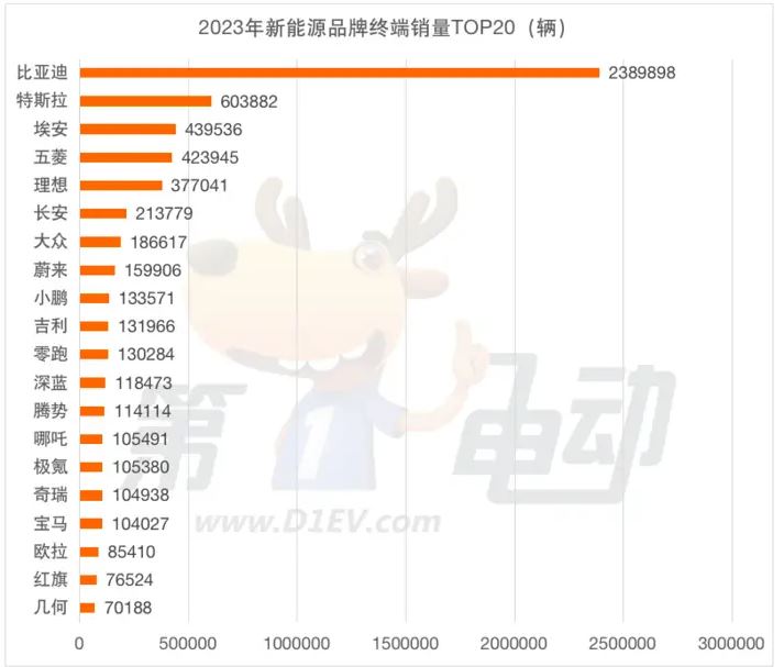 2023销量榜前20只外资剩下特斯拉、大众、宝马;新势力里面理想一枝独秀,蔚来小鹏有点掉队了,比亚迪今年还能保持高增长?