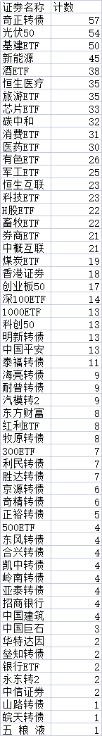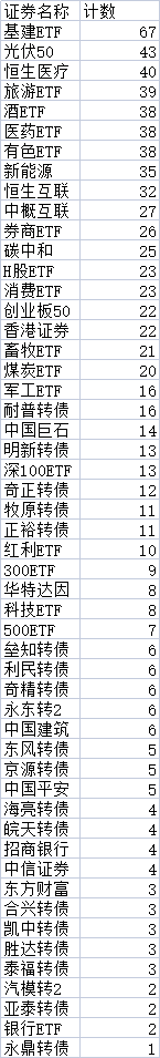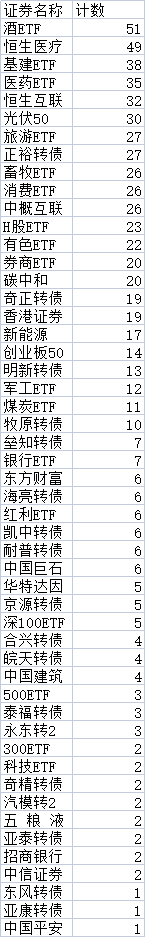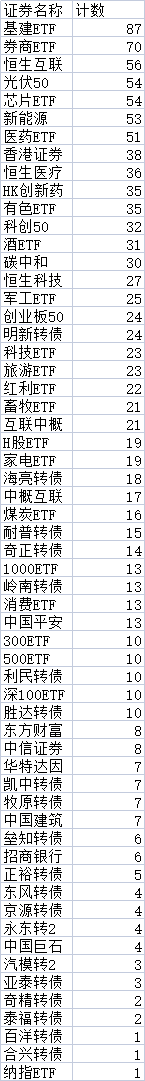 第10周交易次数前5的是:奇正转债、光伏50ETF、基建ETF、新能源、酒ETF。