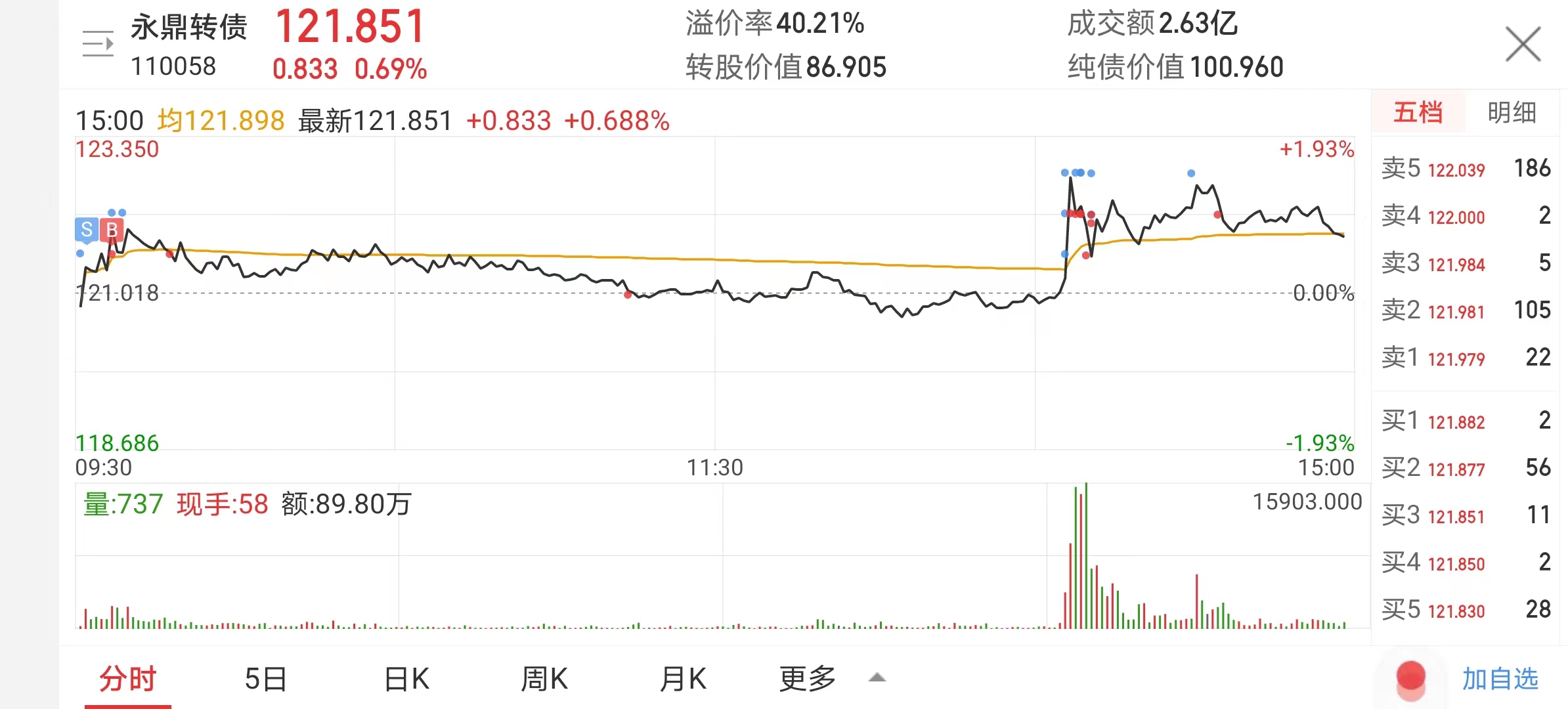 保本出了600股亚康股份,如果收盘出的话,可以赚500+,但没有如果。亚康股份是看到大股东质押后进场配售的,最高峰赚了1000多,但觉得发行的可转债规模小,而且是信息科技热门概念,有炒作的概率,就没有离场。今天保本出,白赚了2手亚康转债,预计盈利至少1000+。
