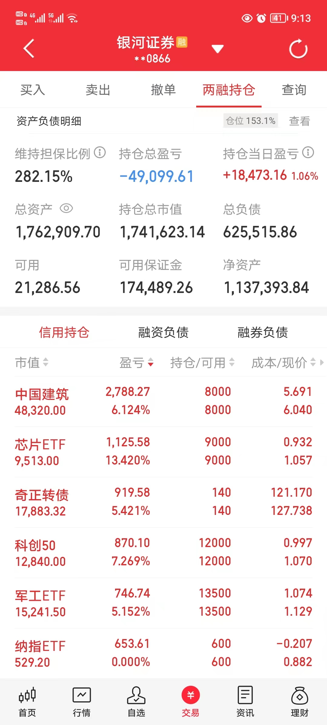 今天三大指数高开高走,然后回补缺口后都收红,但波动不大,比较适合网格,卖得比买入多,有了5万现金和16万融资额度。