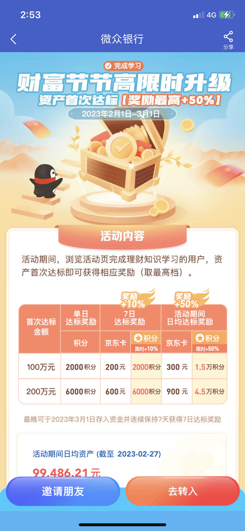 3,获得理财收益年化2.x% + 总金额京东卡 0.2%奖励