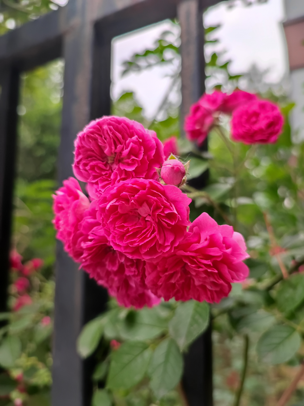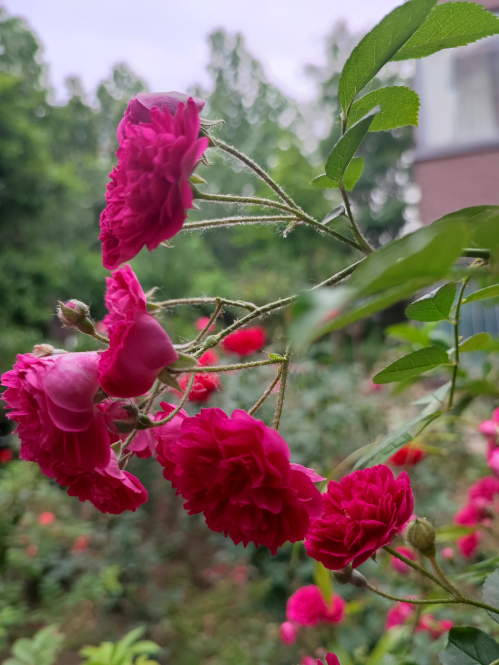 几周前,我们出外游玩时,发现某大院内种的蔷薇花,时不时伸出枝条,还有些花骨朵儿,旁边还有新修剪的痕迹,大概是园丁不让它长到外面,影响人行道上的行人。当时我就萌生了个美妙的想法。