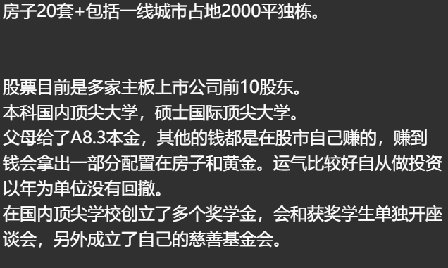 女人看女人更客观,那个主帖描述的一看就是男人眼里的白富美。如果是现实生活里,有A9级有能力的白富美,没有一个不是眼高于顶的:)。来集思录高净值客户多的地方打窝来了我最近遇到一件事,江湖险恶,不得不防!