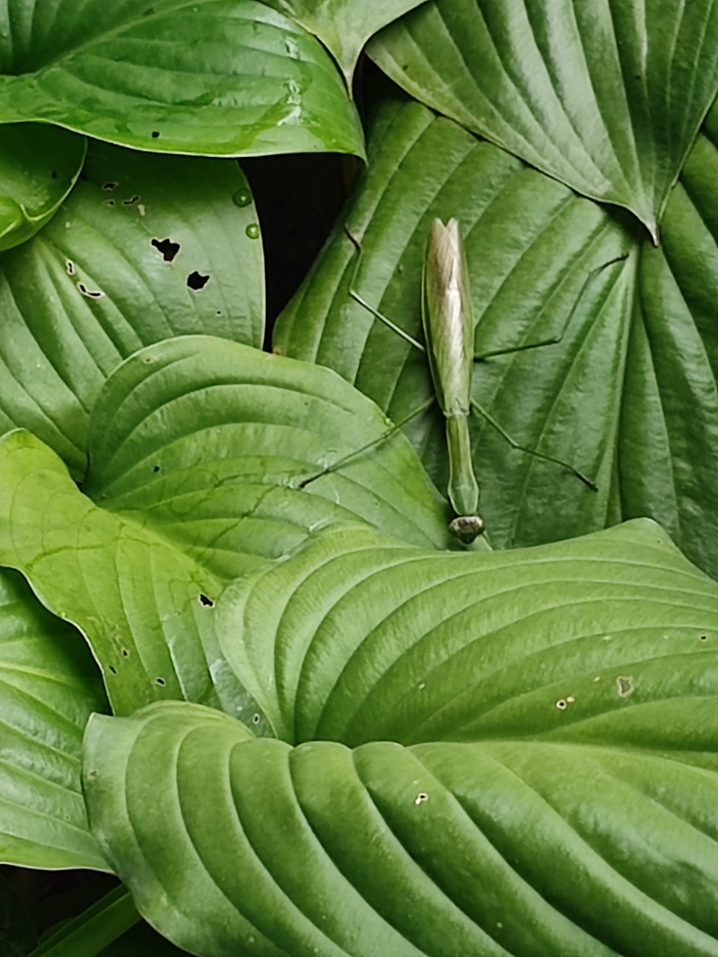 大螳螂在饮料瓶里张牙舞爪,挠壁的声音让人有些难受,索性怕它放到绿萝上遛哒,大眼睛嘀溜嘀溜直转,纠结要不要赶紧放生呢。