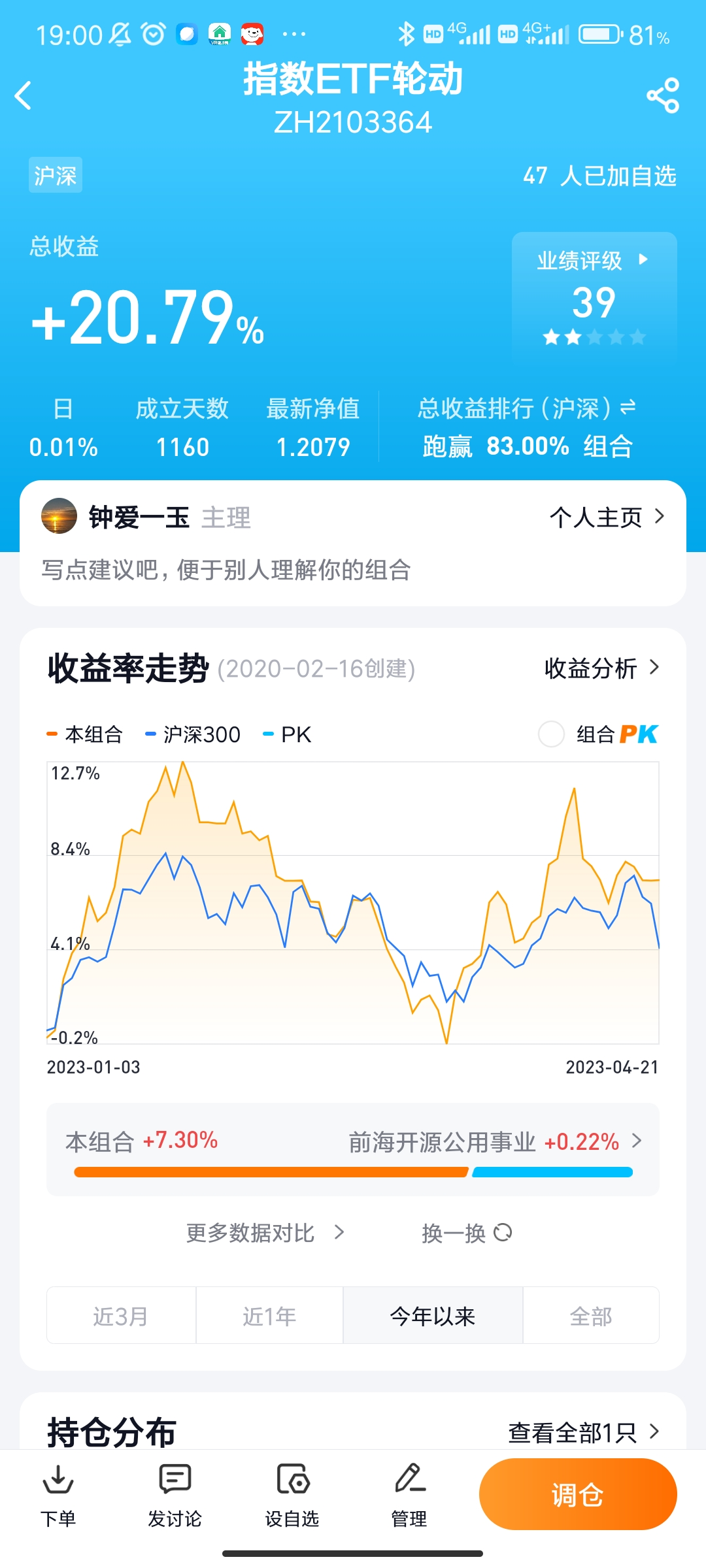 我来说一下。楼主把自己的调仓记录公布出来,而且效果不错,不想动脑子的直接抄作业,想动动脑子的,那就加上自己的理解和策略就行了。要感谢楼主的分享哈,虽然确实看起来调仓乱乱的,但是基本的逻辑还是保本的前提下,选择活跃的,题材好的,趋势好的。我是防守仓基本上跟随楼主的仓位,遇到我能理解的,或者特别好的,我就加大仓位。遇到我不认可的标的,我就不跟随了。确实,作为参考比较好。