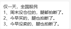 印花税减半!收紧IPO、限制股东减持......这么快就救我了嘛?我已经迫不及待的想象明天有几个涨停板了。今天真是喜毁了我。我早上跟随大V的建议将所有的条件单都删除了,生怕卖在最低点。