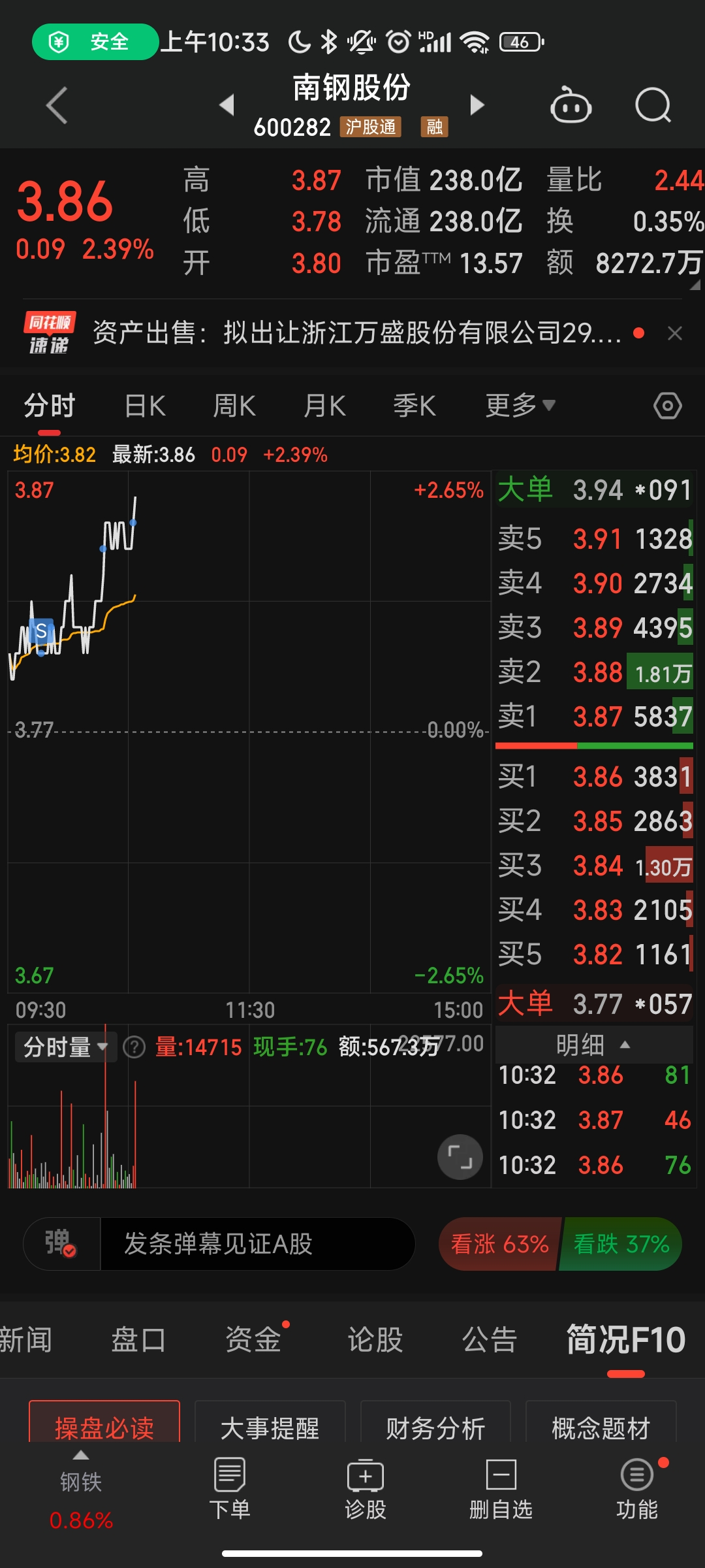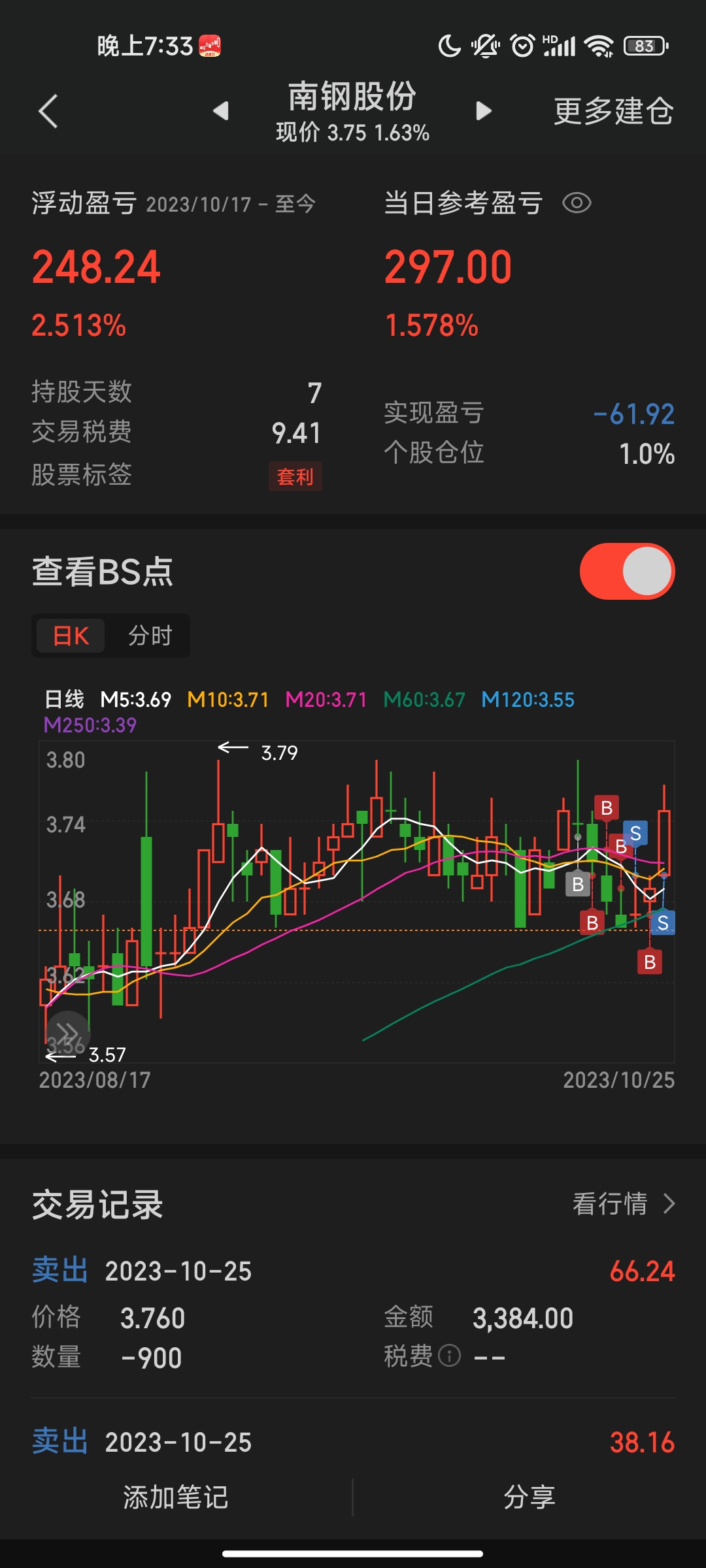 上周五一顿卖卖卖,有大把现金,不想浪费,去买了高股息陕西煤业交通银行,结果今天亏惨了。眼看着群友一个个挣1%,我只有可怜的0.15%感谢南钢股份,今天又赚大钱了一模一样的剧情,我今天居然是亏的,好心痛