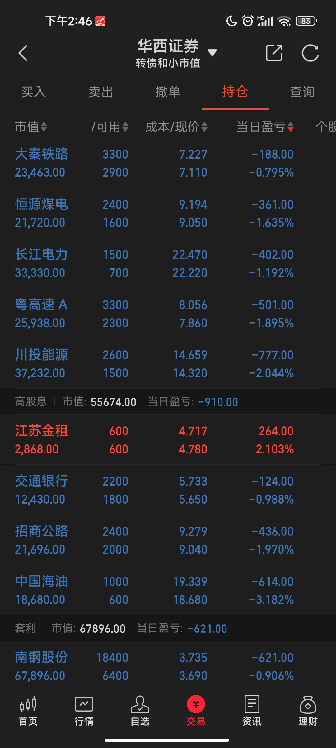 别问我钱从何出来,当然是其他股票挣钱呀,他们是昨天买入的长江电力、川投能源、粤高速、大秦铁路、黄金ETF、华宝油气、优彩资源以及大大前天买入的套利股南钢股份。