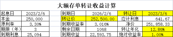 对于你所提供的这个例子,我去看了一下原文:她是在1月份的时候购买的3年大额存单,这个月进行转让。