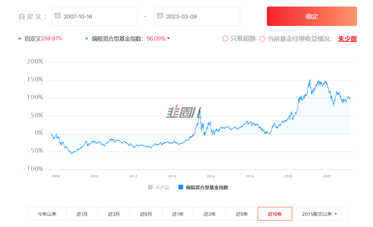 只要是从05年开始的基金,年化15%以上不难,刚好赶上06、07年的特大牛市