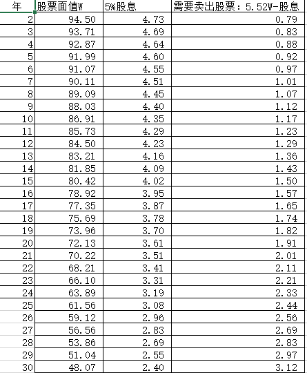 每年分红应该覆盖不了“贷款利息+还的本金,那么你的股票本也要每个月卖出,你的股本每个月减少,分红也减少。