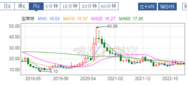 如下图是股票的月线图,股票处于长期底部。但是转债的转股价值只有42元。虽然股票处于底部,要达到强赎,股票需要涨幅200%,难度很大啊!另外一条道是下调转股价,什么时候下调转股价,又是个未知数!