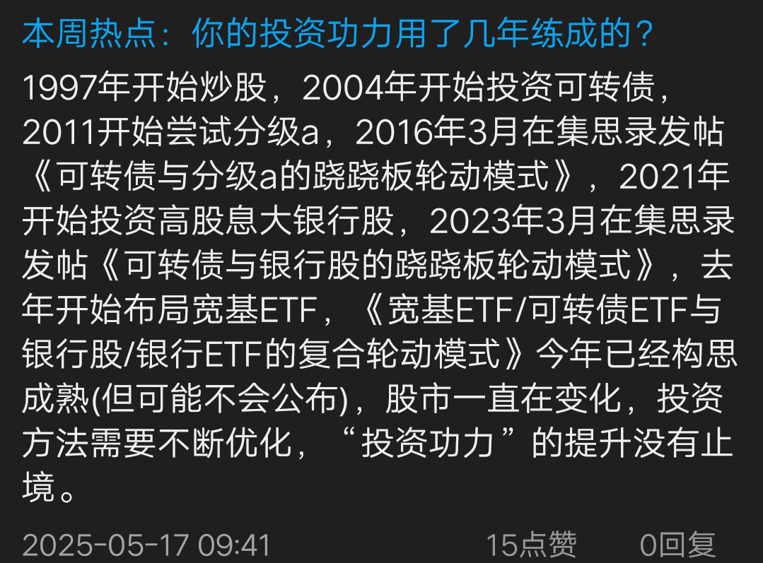 《怎么做转债正股的轮动?》是一个提问贴,里面没有什么内容,我个人也不建议做转债正股的轮动。