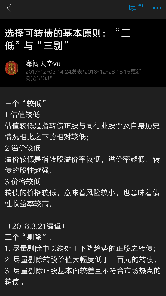 为便于理解,大家可以先看一下2016年的今天我在集思录发的一个帖子,这应该也是集思录最早提出可转债轮动的帖子,里面也明确指出了轮动可转债的主要指标是“低价格”与“低溢价”。