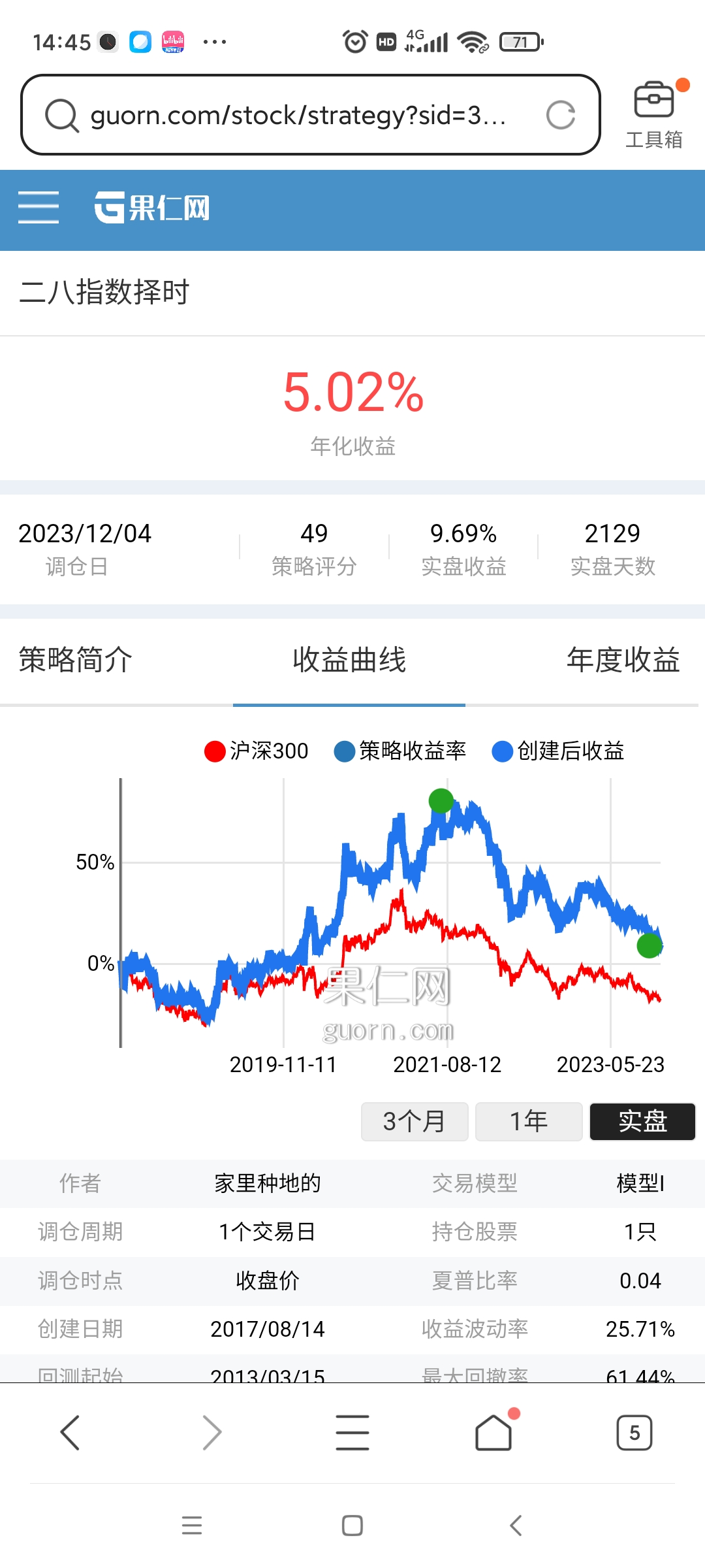 你说的那种类似于极值轮动吧?我觉得极值轮动并不适合行业ETF,极值轮动适合可转债这类具有保底的标的,其他无论股票还是ETF都有可能越轮越弱。从股票来说,股票的小市值因子和反转效应长期存在的话,是可以轮的,而行业ETF没些特性。大多数情况下,行业ETF是动量效应,原因是相对个股,整个行业的交易行为更加理性。我的系统是趋势系统,与极值轮动背向而驰,因此不会出现这种情况。这在系统设计早期就已经考虑过了。