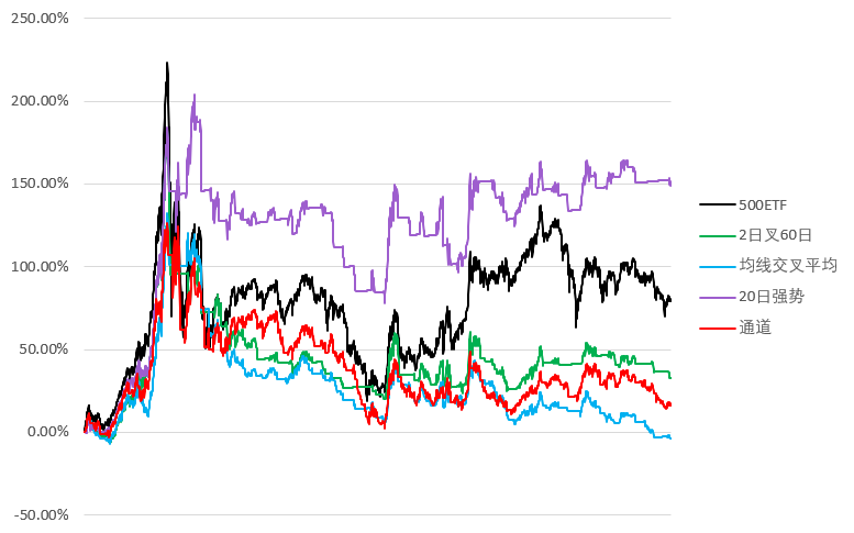 对比了几个日线级别的趋势系统:均线交叉、macd、海龟法则,还有这个……就称为蛋卷吧,当年二八轮动也是称为蛋卷的。有下面几个发现: