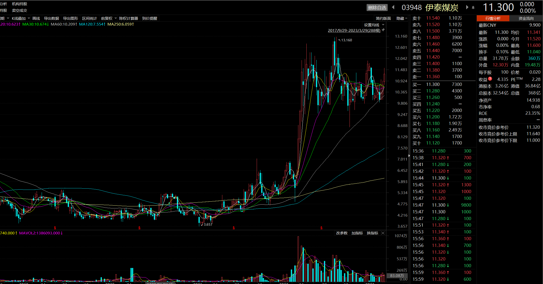 只看股价,伊泰煤炭从低位已经涨了200%了,居然大股东还是觉得低估。。。