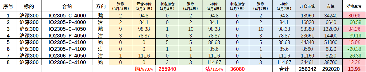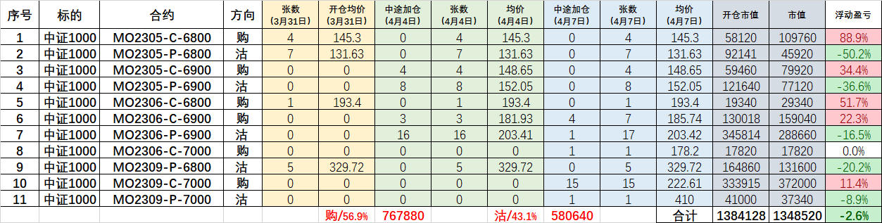 因为我用期权去算仓位,所以期指仓位极少,也就没有期指底仓在暴跌中蒙受损失。