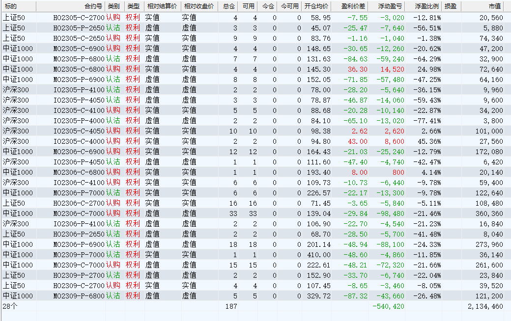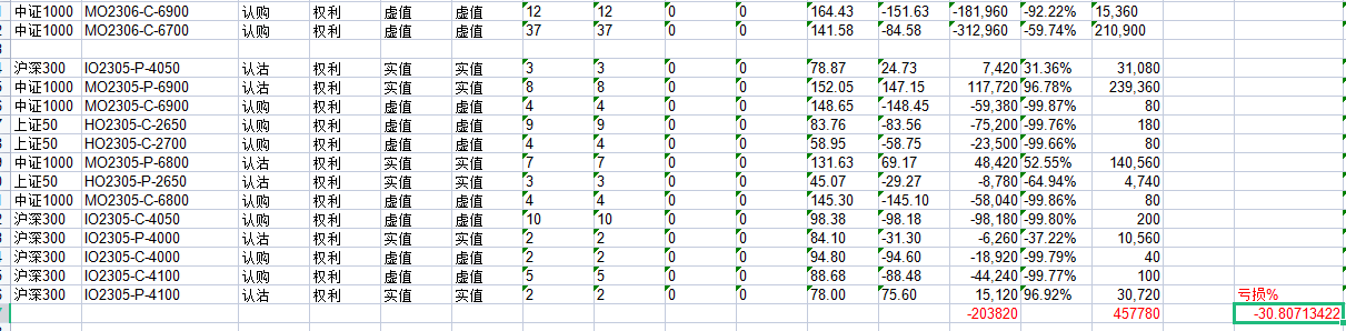 上周五交割,期权赢回此前的大半个月的损失,剩下的仓位现盈赢回一个月的损失。