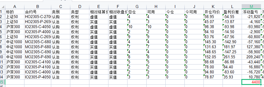 期权大量买卖平仓后, 如果统计盈亏是个问题. 每笔成交人工统计又不太现实.