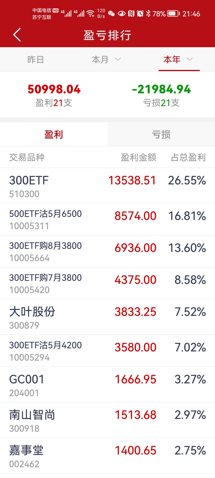 简单到不得了,交割那天截个到期单的图,凑够十二份就是一年了,加起来就知盈亏了。