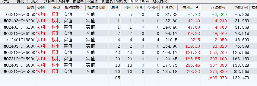 待回升至5900多时,波动率下降后,选择了加仓期权,减仓抄底的期指。所以看到的期权盈利较低。