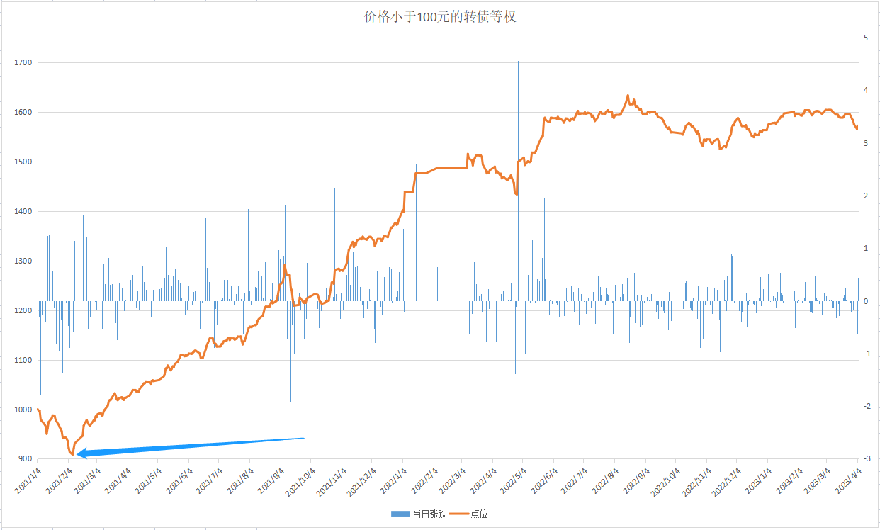 当时转债市场大约180只在100元以下,市场总共359只可转债,就是说有一半的转债价格低于100元