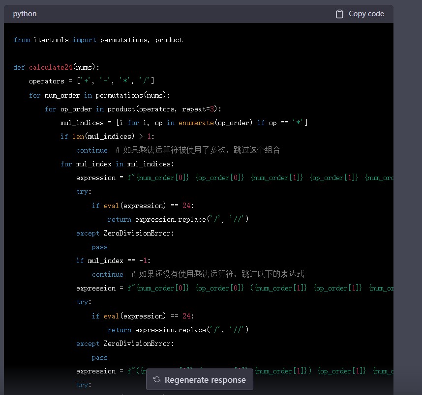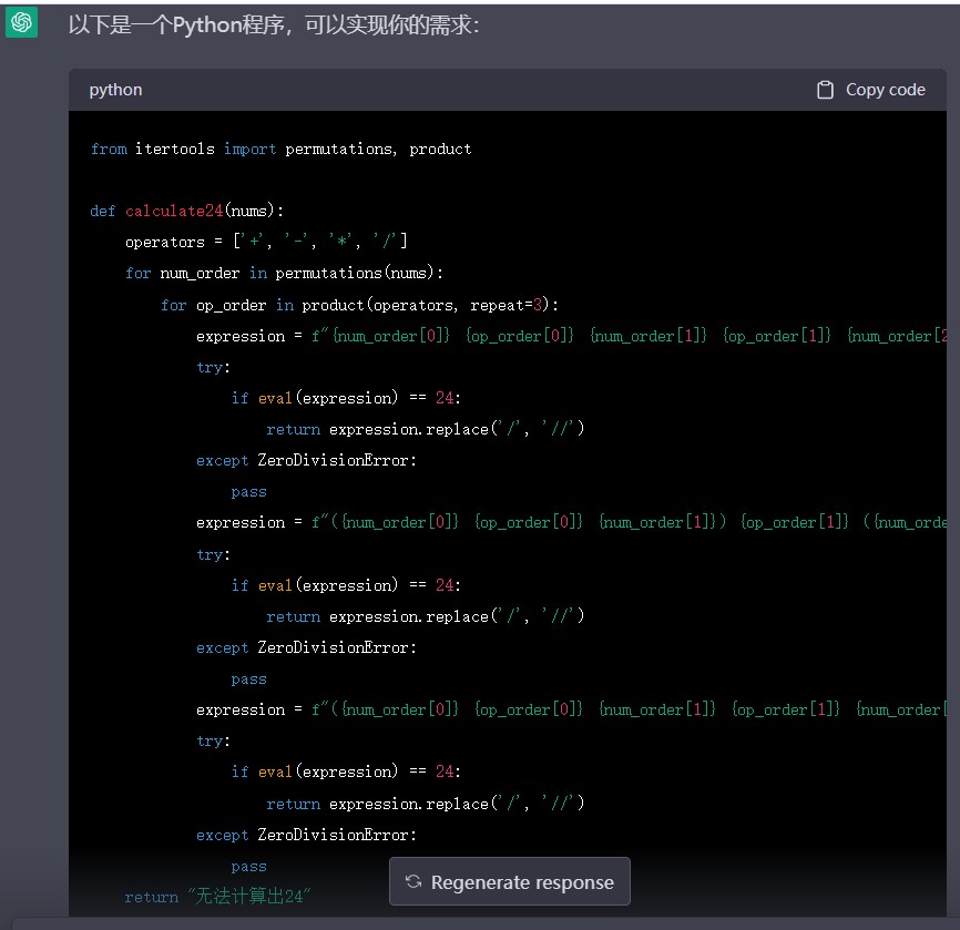 既然是用简单问题做测试,是不是应该看看它写出来的代码啊。你看它给你的代码,哪怕作为大学水课作业交上去能得分么?程序不是说能过一两个测试用例就行的。1、expression.replace('/', '//'),在它的回复里说了,用'//'替代'/'来显示,那句话我没拷贝出来。