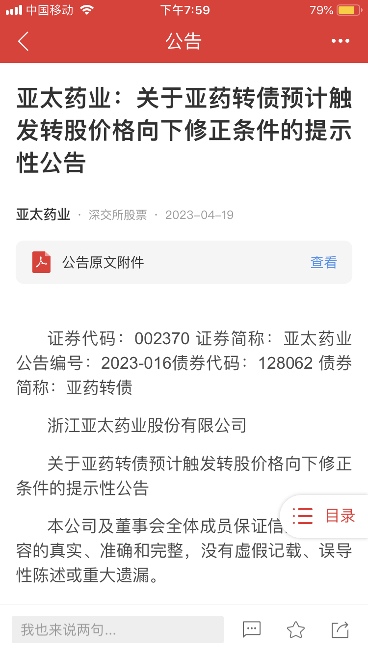亚药不值得,强赎的可能性极小,两次都不下修到底,足以证明大股东不想稀释股份,所以只要到期赎回,或者像洪涛,光大那样到期溢价率不大自己转股。像光大那样,但亚药没钱啊,其实可以大股东定增,然后强赎,股权也保住了,钱也不用还了。