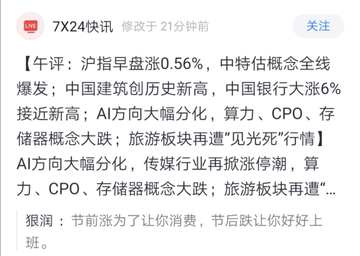房子扛不起财政了,股民也该为财政多买点单。还有地方风投财政也在发展中,也需要股民买单。买单是肯定要买单,总好过存款躺在银行里互卷终生。生存哪有那么多躺在波光粼粼的湖面上泛舟静养,总要时不时面对惊涛骇浪。