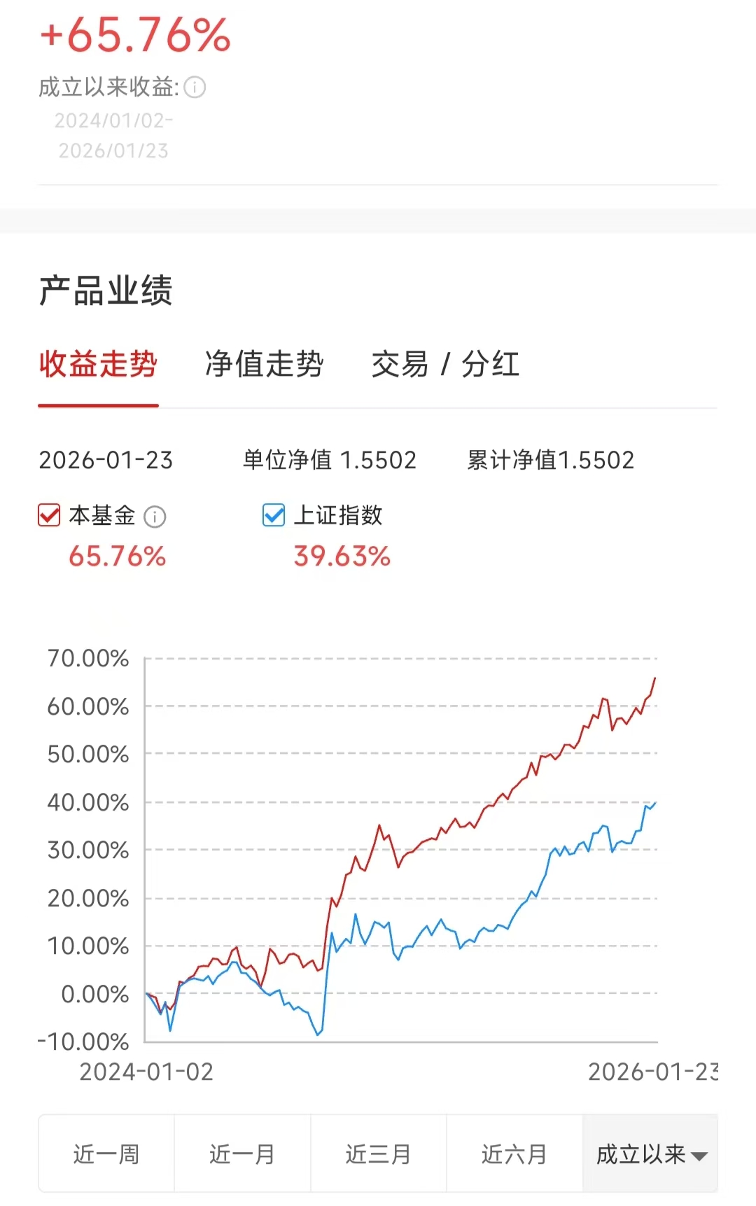 两年前参照沪深300,4000多点,今天收盘4100点,指数涨幅+2.5%,两年管理扣4%,还有40%+的相对收益,平均下来基本达到我预想的一年20%超额收益的最理想效果。