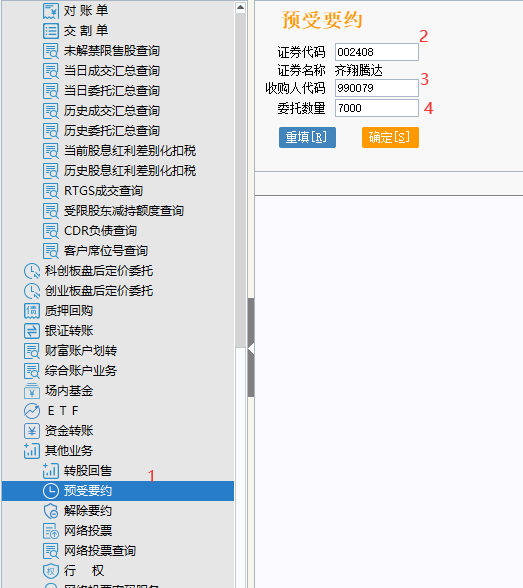 晕死,你这样太危险了。我的APP里“其他操作”-》“要约预受”可以操作。如果你没把握,请咨询你的客户经理具体的细节,今天可以先操作一小部分测试一下是否成功了。