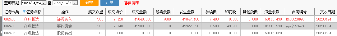 5月5号钱回来了交了0.1%的印花税和0.012%的交易佣金。