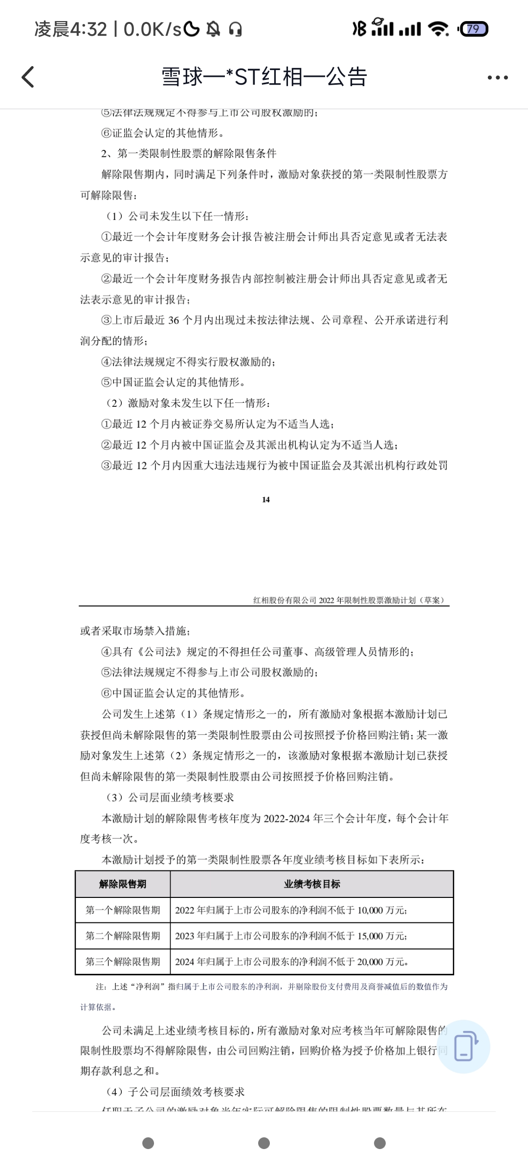 说点认真的,公司被立案以后有以下两种心态都是不妥当的,提前买了的自怨自艾,没买的患得患失。从财务数据看,首先红相19年以前报表不涉及差错,也就是旧规的退市规则对红相不适用。重点看20,21,22年的,这三年收入分别是15.1,13.9,16.36(差错调整后为13.5, 13.7, 16.36),min连续两年收入合计值的50%为14.5;20,21,22年的,这三年净利润分别是2.3,-6.3,...就怕审计机构一直合着上市公司造假,今年查得严,就翻脸了,过去的账目全是假的。