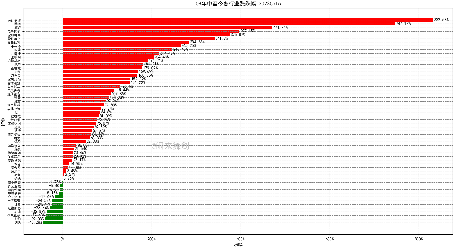 从中国人口已经在下降的角度来看,医药应该算是少有的、高确定性需求会增加的行业,主要体现在消费量上,但是价格主要遇到带量采购的问题,这也是为什么过去2-3年医药一直跌的原因(2020 - 2021年因为疫情被炒得太高也是另外一个原因)。涨起来了才吹?你要是一年前算你有眼光,现在吹就没意思了