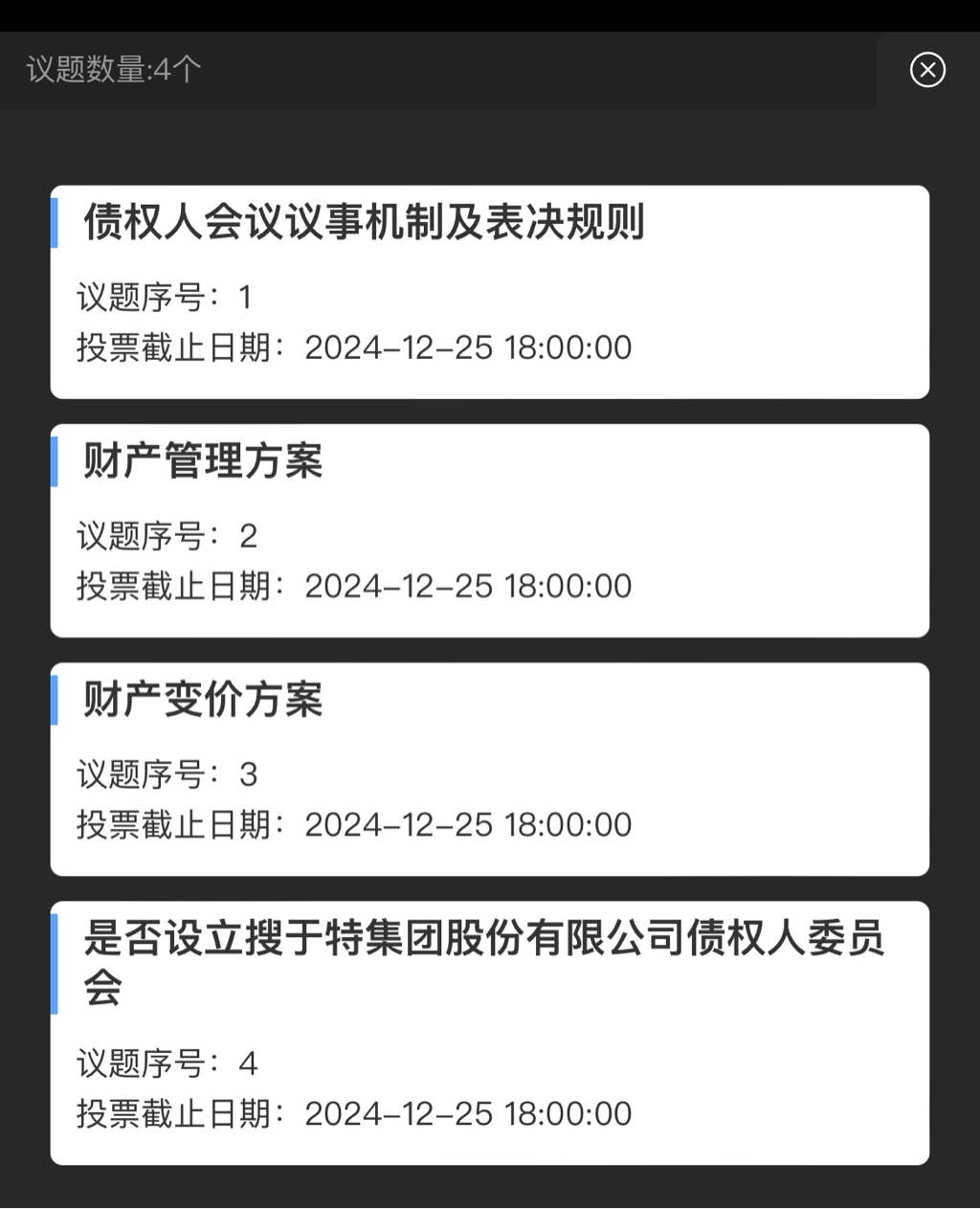 从上面的几点设置可以看出,管理人就是希望我们转债的持有人不参加、不投票、不投反对票,这样达成他们自己的目标:搜特的残值由他们处置,转债的持有人等同于普通的债权,而且是别的债权人分完了之后剩余的。其他债权人分完之后还能有吗?肯定没有了。别想着小额了,别想着还能有10块20块了,如果不积极争取,几毛钱都没有。
