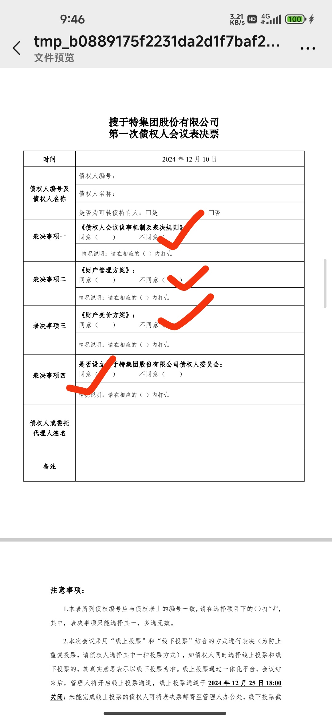 全部反对,并提交债权异议申请书,转债是特殊(优先)债权,不是普通债权,顶起来兄弟们已提交。