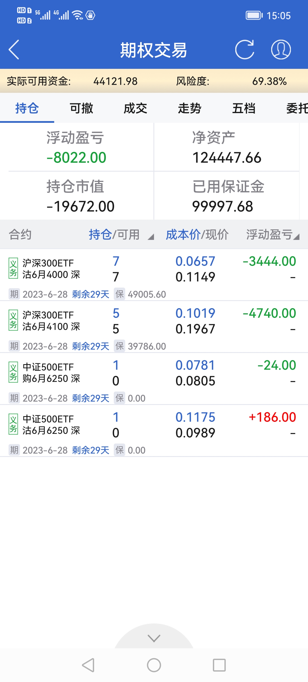 5.30,收益率124447/125400=0.992400319,沪深300ETF(159919)收益率3902/3915=0.9966794381