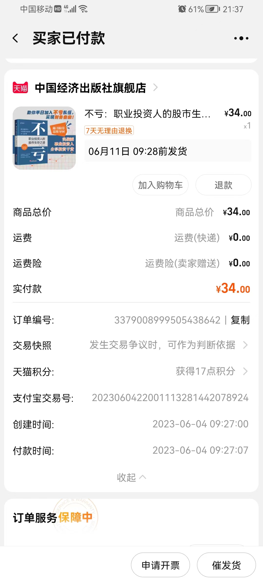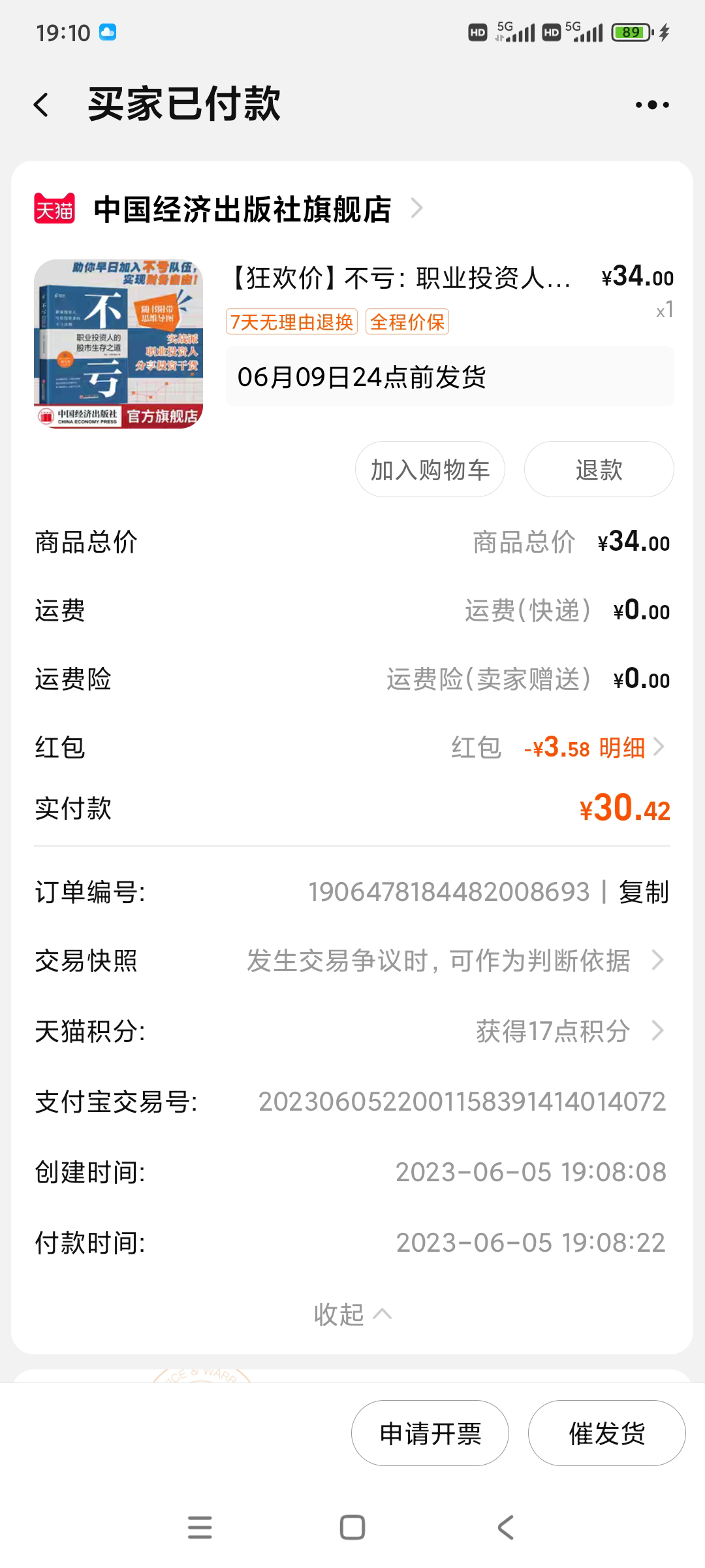 我和资水合写的书《不亏》出版了,京东、当当、天猫文轩有售,下面是中国经济出版社提供的购买链接,统一五折34元销售。价格不对的,下周会调整好。