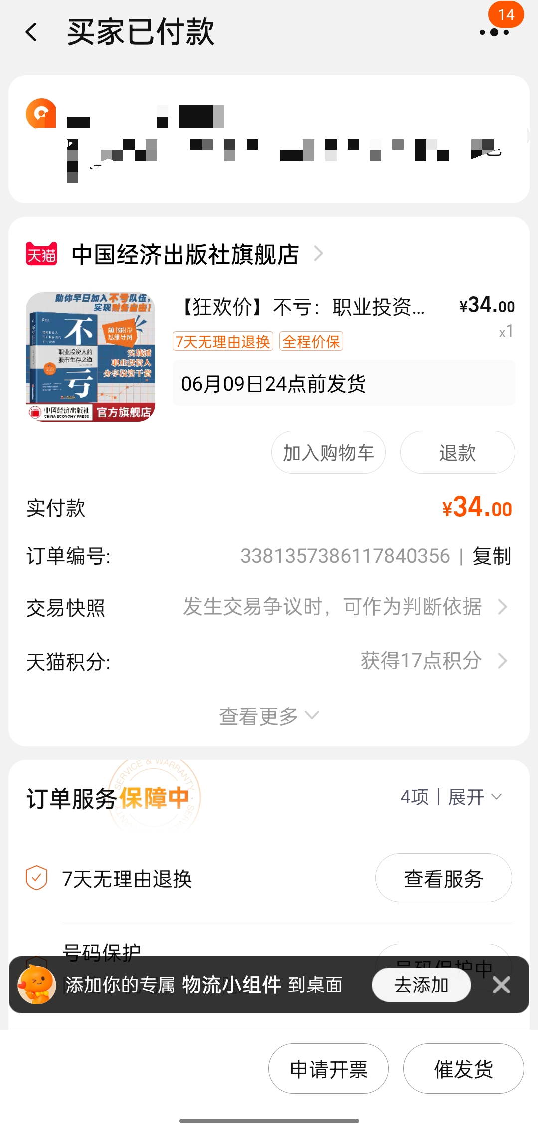 参与方式:在本帖里把订购交易成功截图发到回帖里,集思录ID作为抽奖参与的身份。新人不能贴图的,把购买单号填写上就可以,照常参与抽奖。哪个平台买的都可以参与抽奖,最好别拼多多买盗版:)