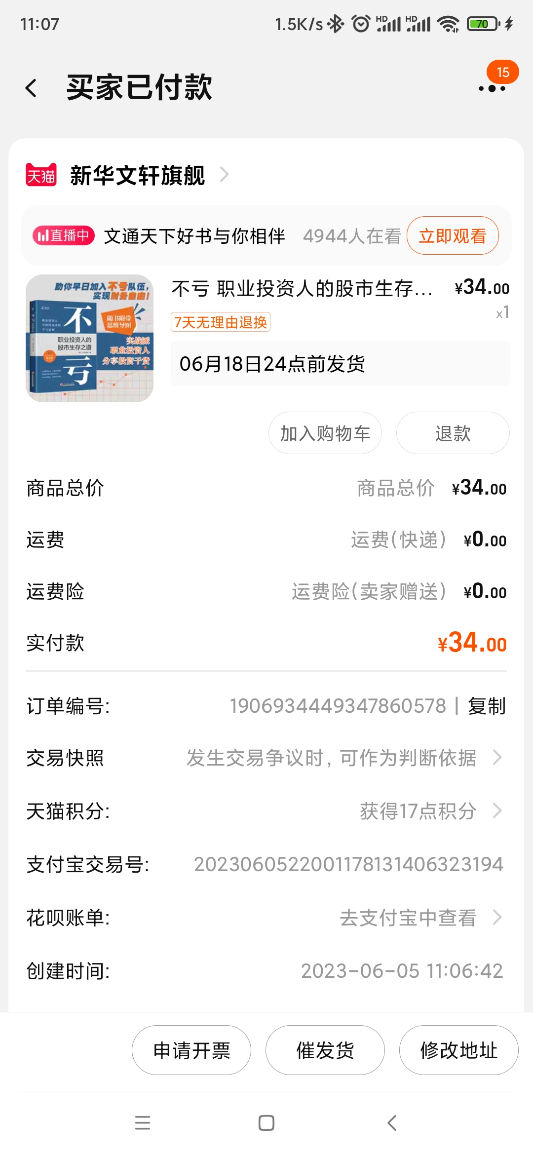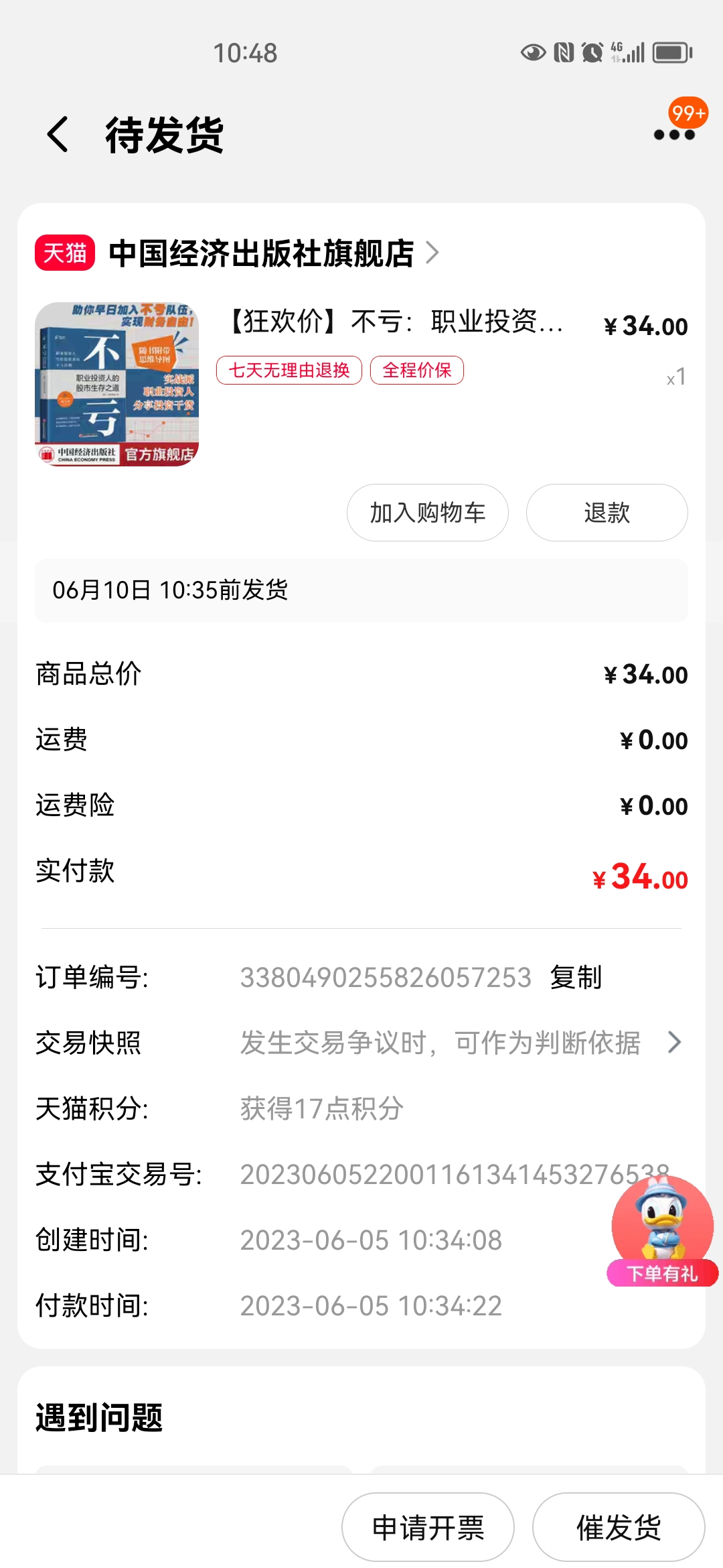 我和资水合写的书《不亏》出版了,京东、当当、天猫文轩有售,下面是中国经济出版社提供的购买链接,统一五折34元销售。价格不对的,下周会调整好。