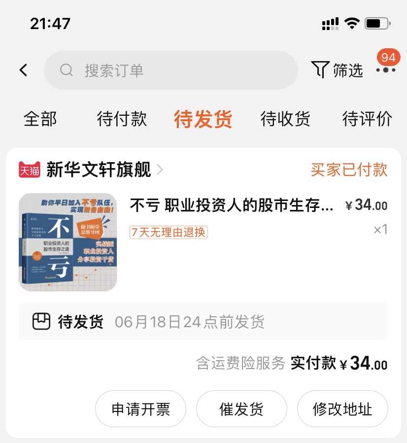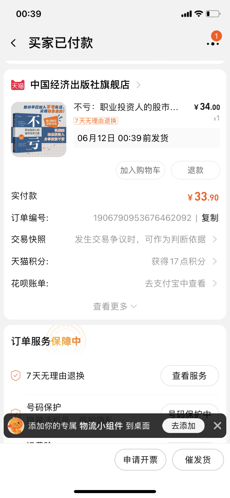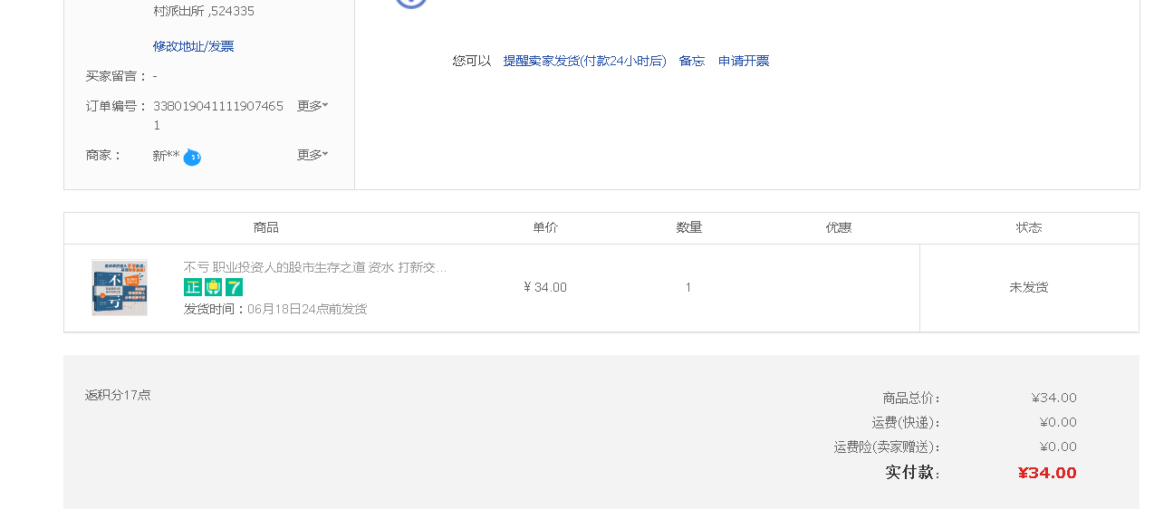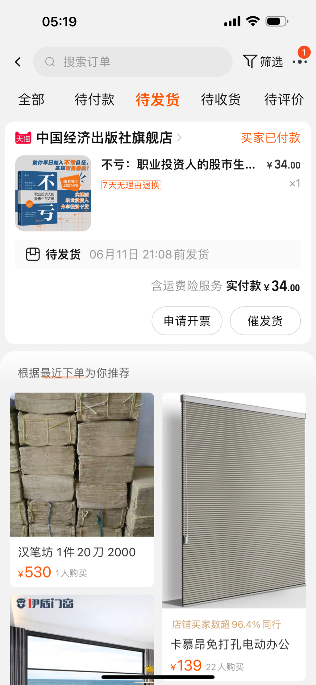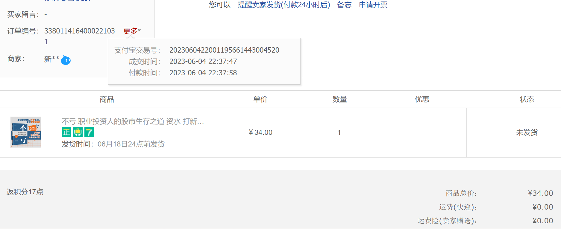 您可以提醒卖家发货(付款24小时后)备忘申请开票