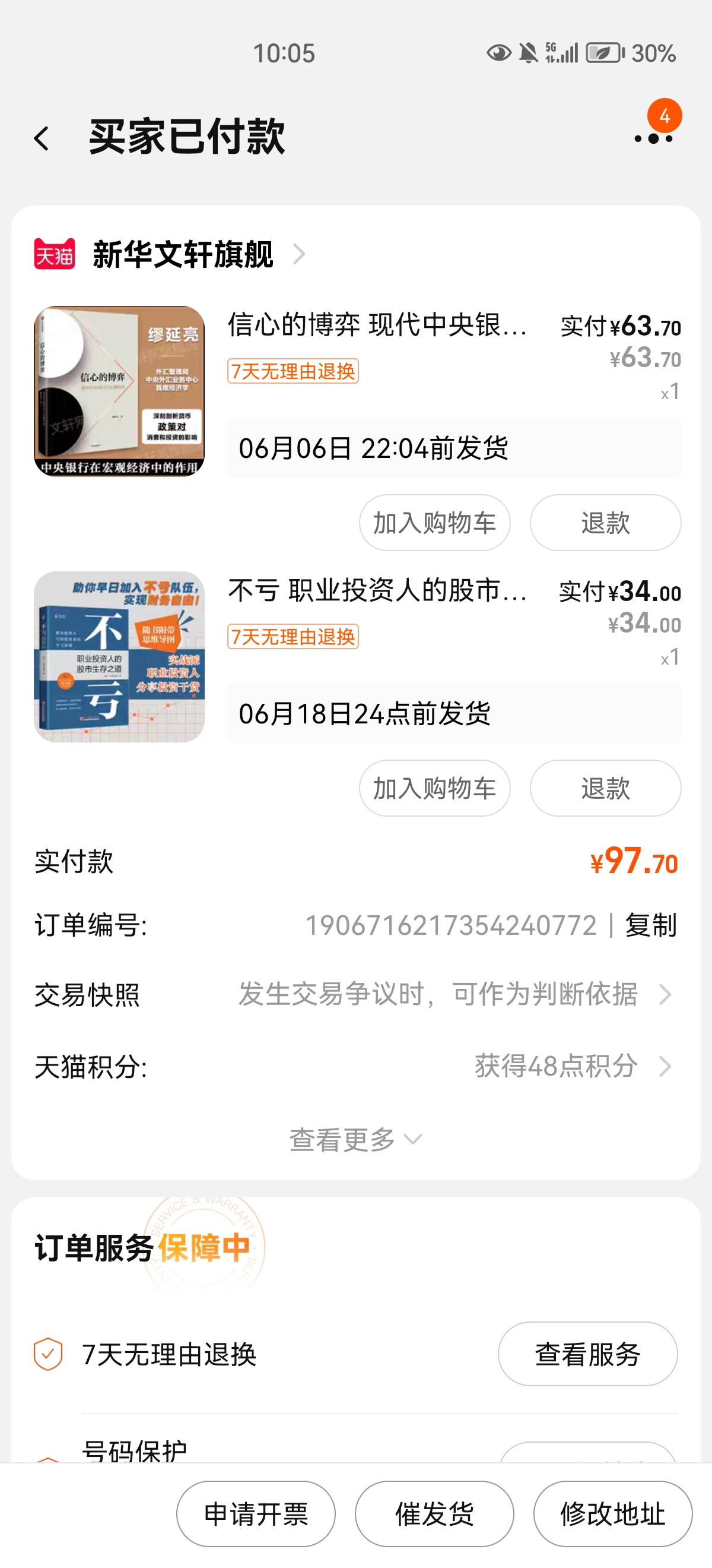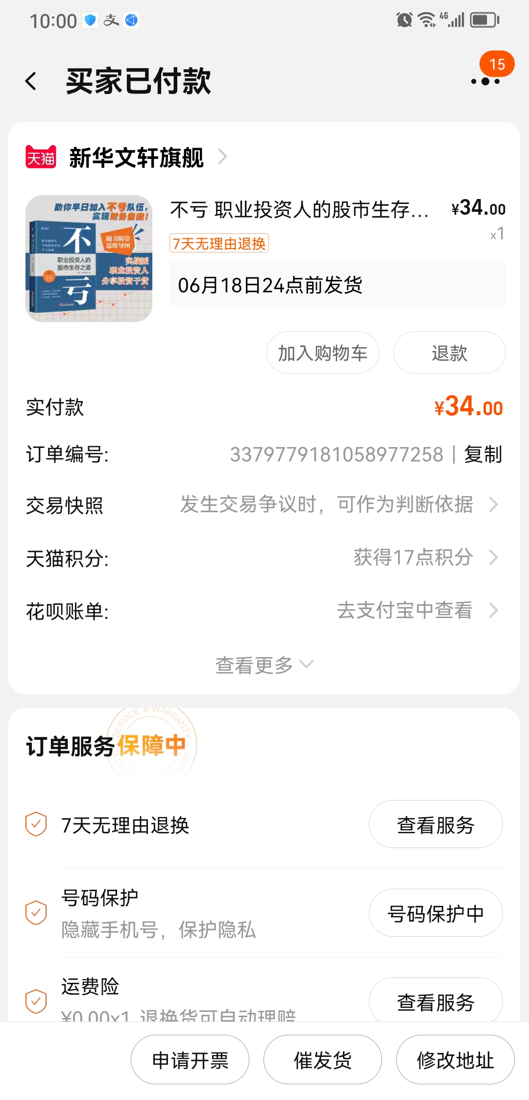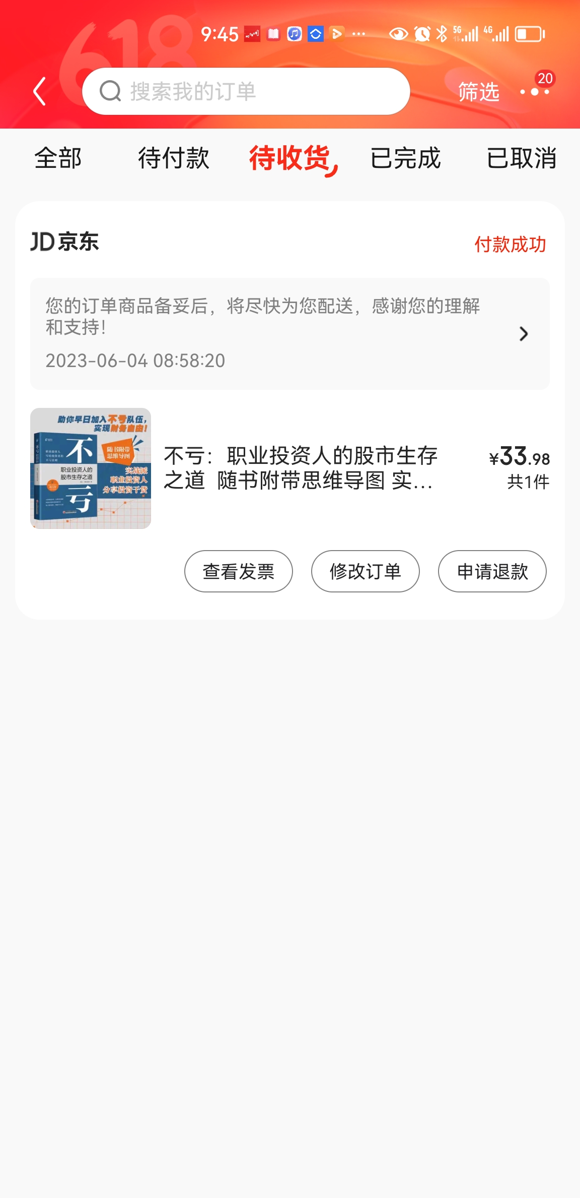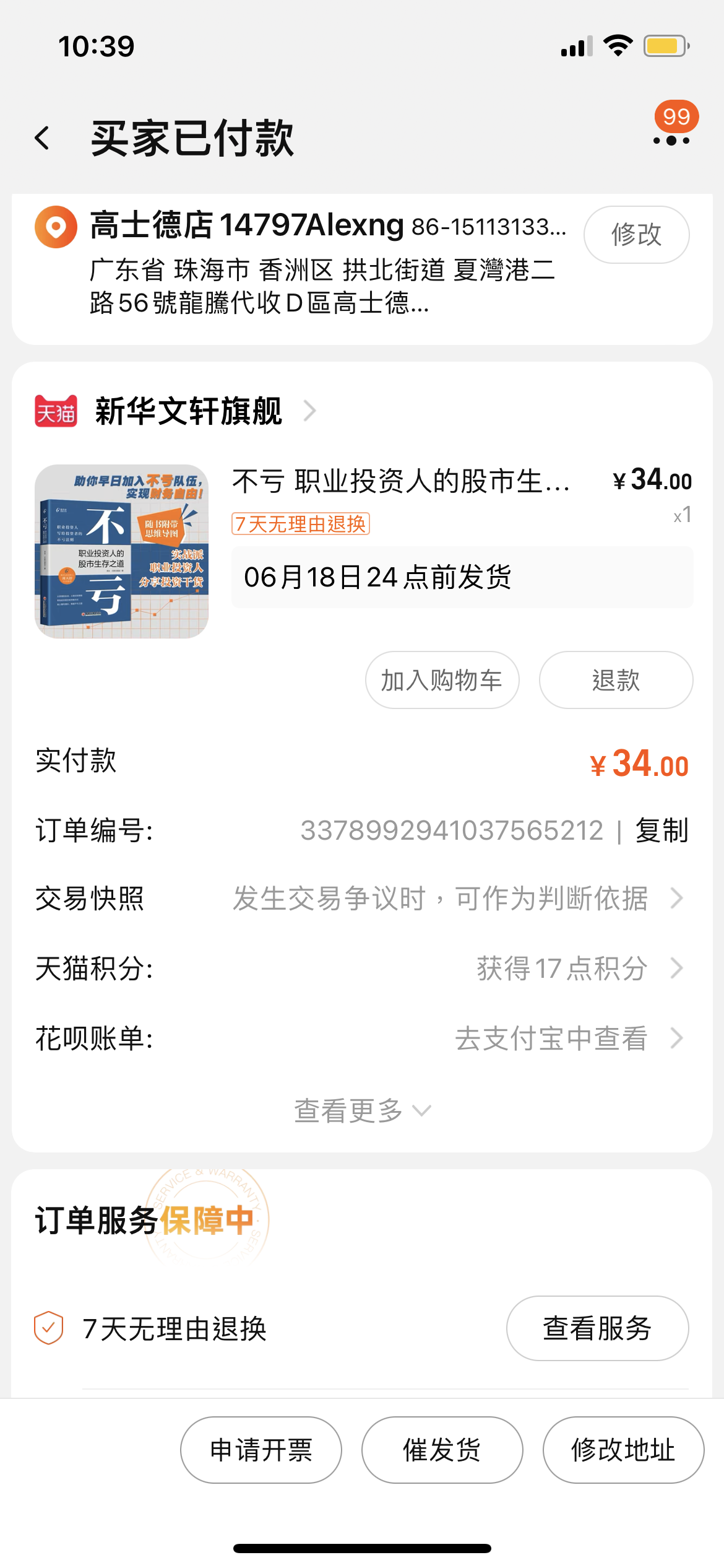 您可以提醒卖家发货(付款24小时后)备忘申请开票