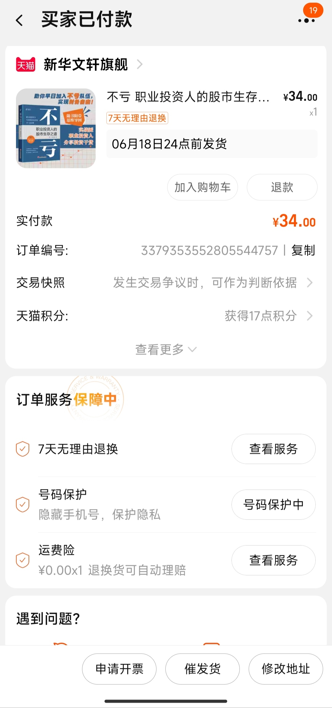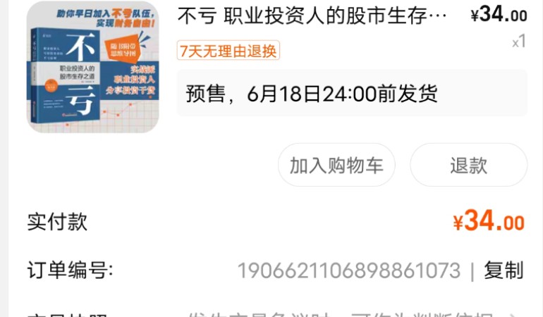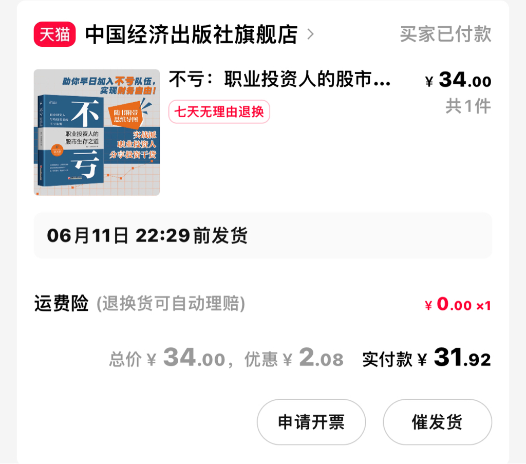 我和资水合写的书《不亏》出版了,京东、当当、天猫文轩有售,下面是中国经济出版社提供的购买链接,统一五折34元销售。价格不对的,下周会调整好。