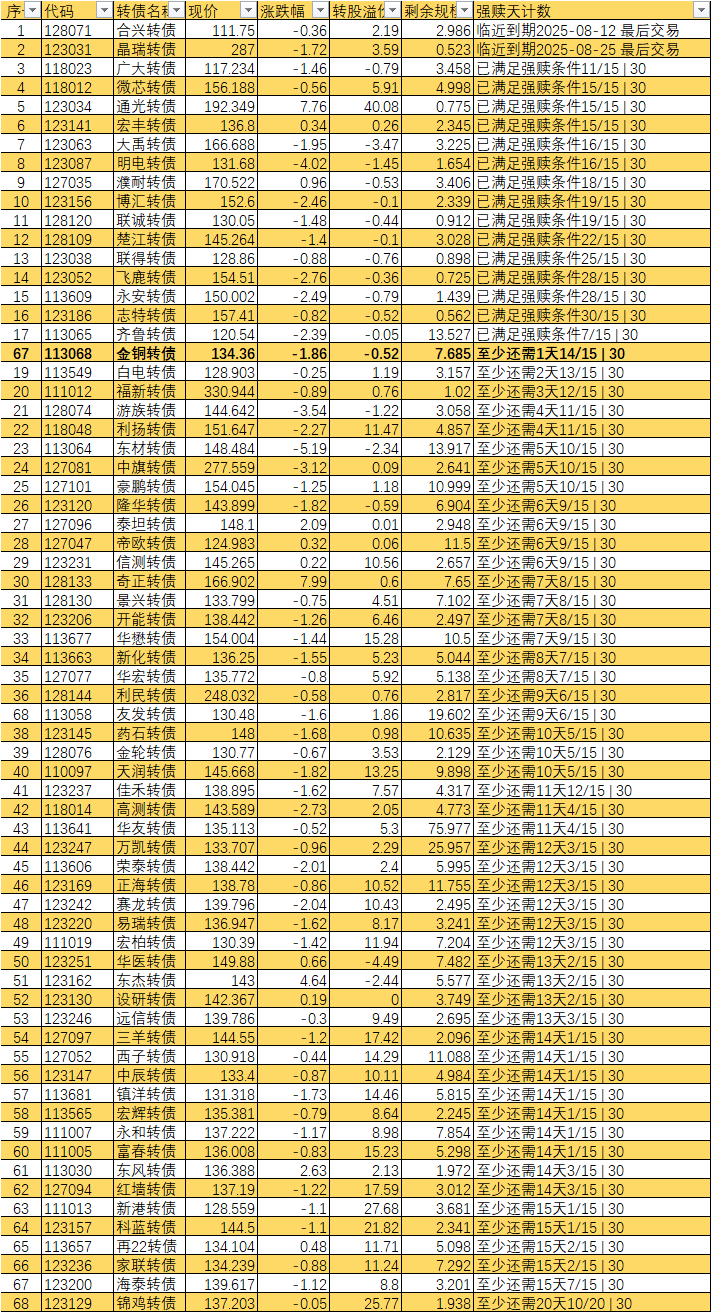 感谢楼主每日付出! 小建议,最后一栏是不是可以分成2栏,一栏提目:至少还需,一栏题目:最后交易日,这样看着更简单一些。供参考。